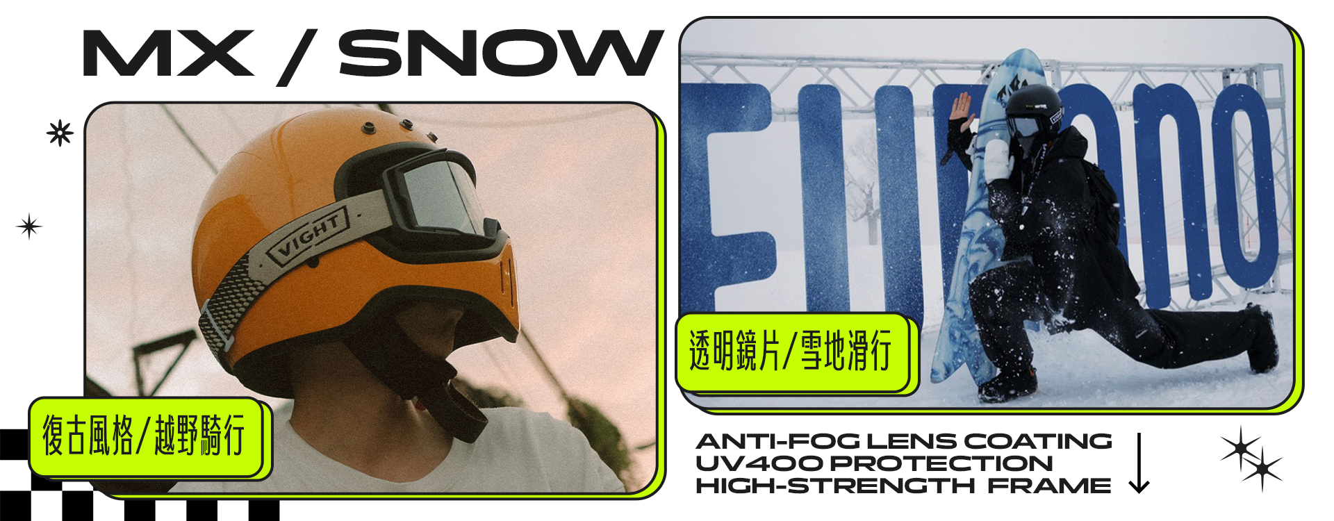 結合復古騎士風格與雪地運動需求,擁有全框透氣孔設計,有效減少霧氣累積,提供清晰視野。入門款價格即配備 VIGHT 獨家單層防霧技術,