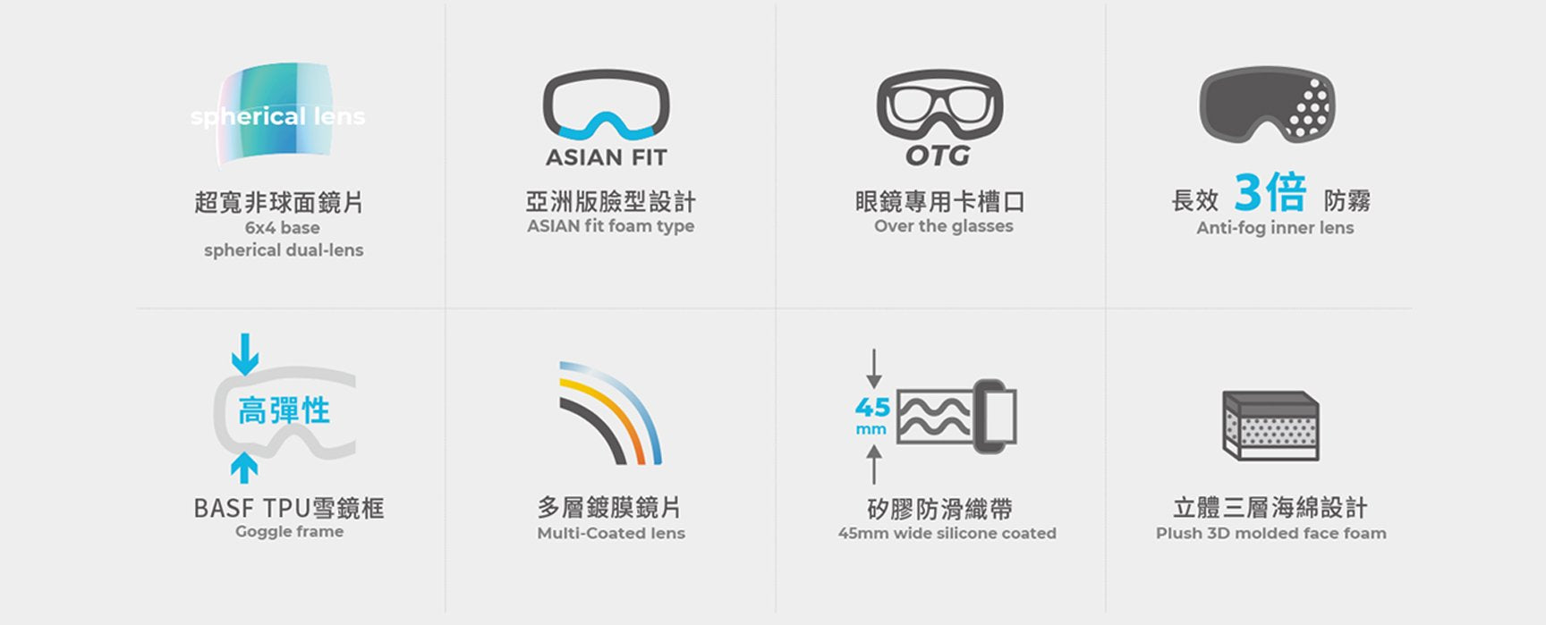 大視野非球面雪鏡系列,可與部分近視眼鏡相容