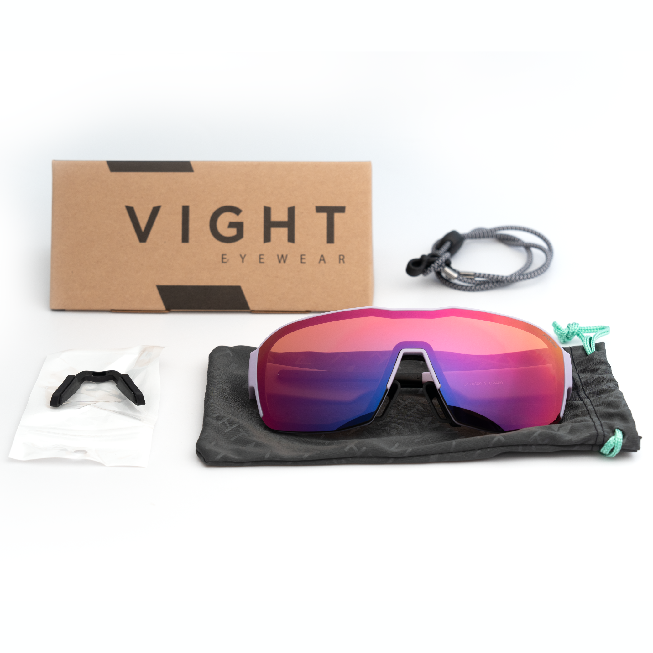 - 包裝內容物 : 眼鏡收納布套(內層為超細纖維拭鏡布)、眼鏡掛帶、替換低鼻墊